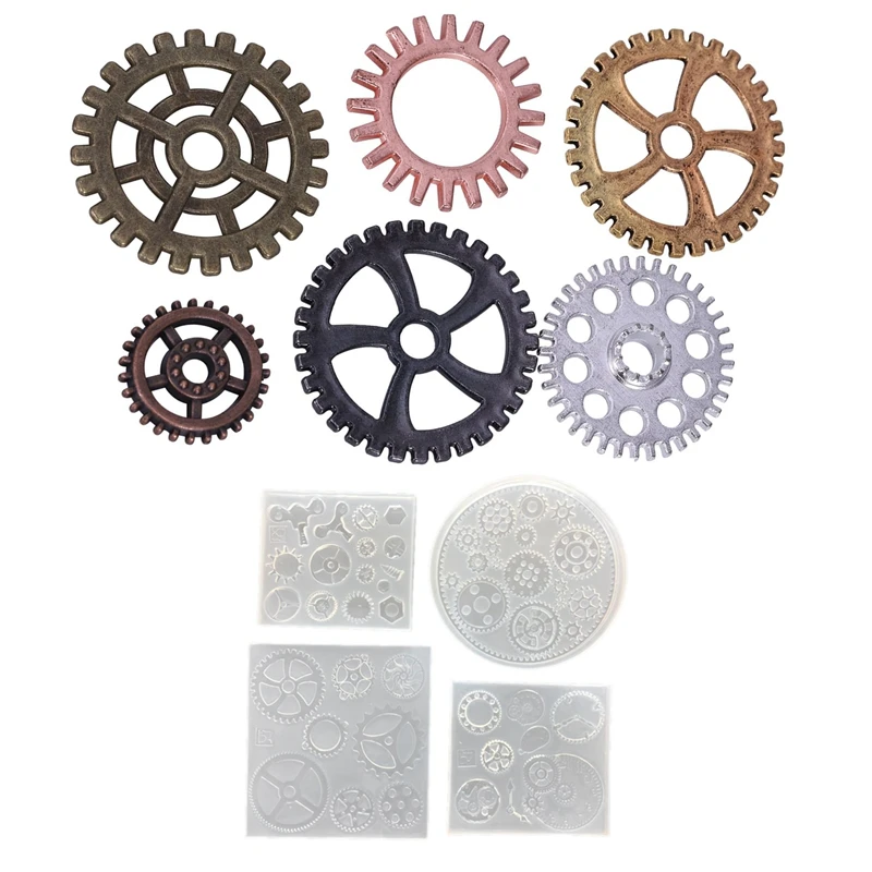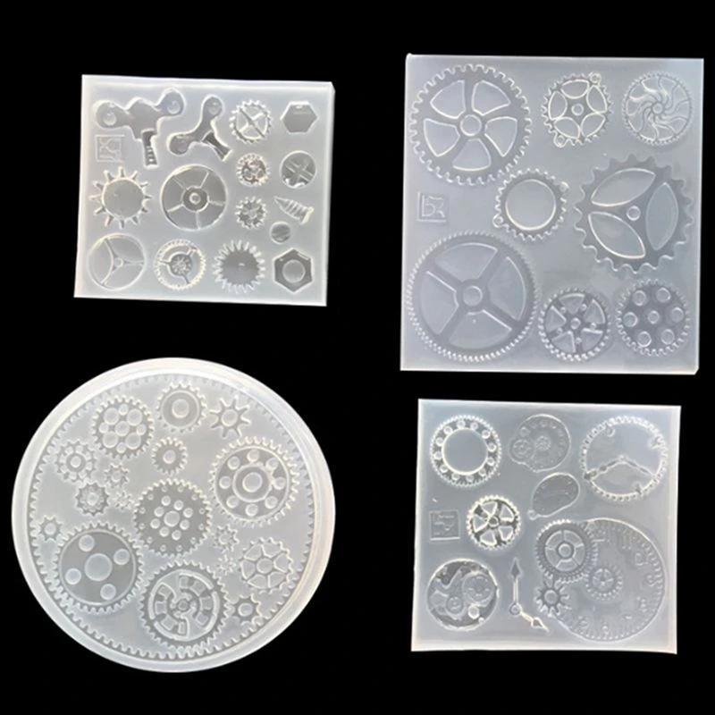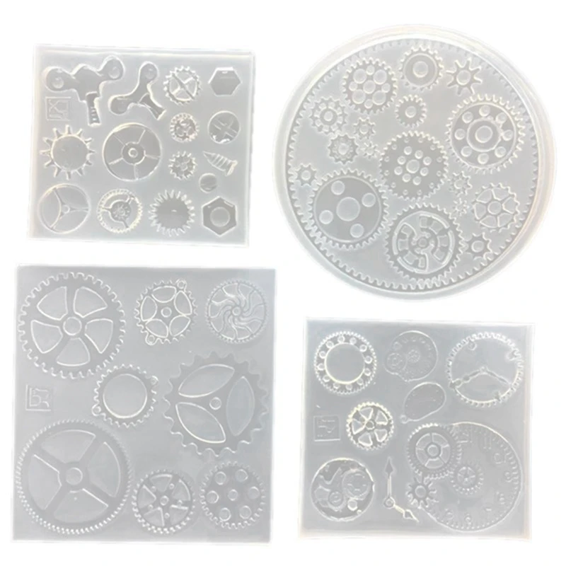 5 Pcs Clock Making Mold : 4 Pcs Silicone Resin Jewelry Molds for Gear Wheel Clock Designs & 1 Pcs 1